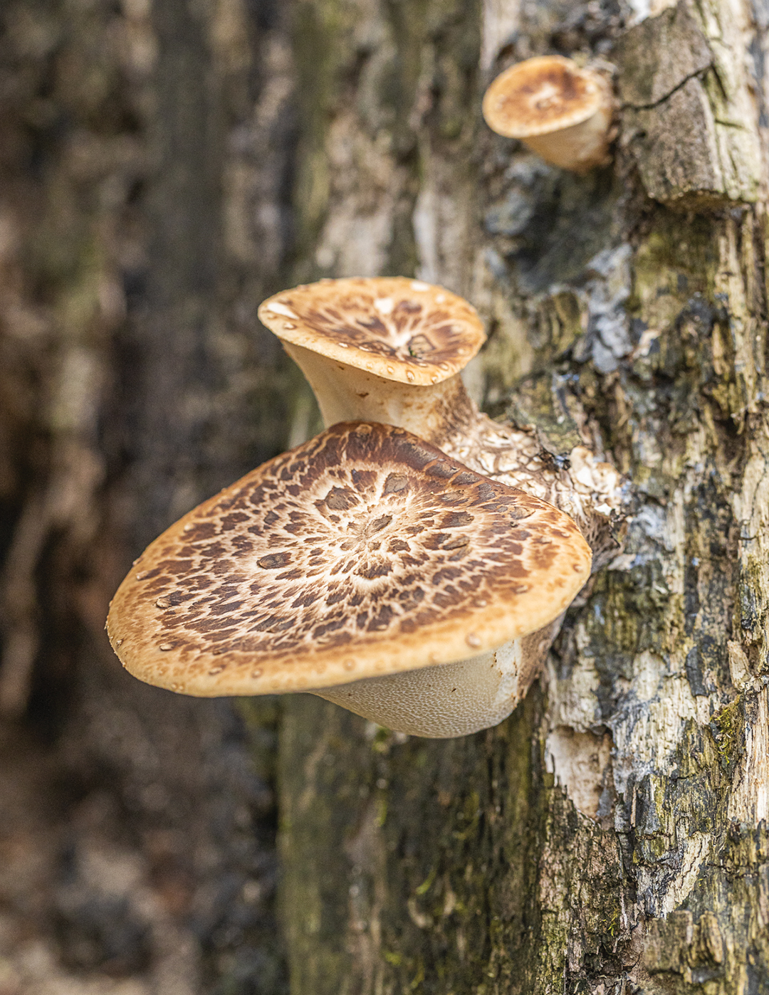 Growing on dead elms and box elders, these are “shelf” mushrooms with a brown, feathered pattern on their caps. They have a distinct cucumber, melon-rind aroma. Only harvest young mushrooms: The pores underneath the cap should come off easily when scratched. Look-alikes are edible, but none have the cucumber aroma or feathered pattern.