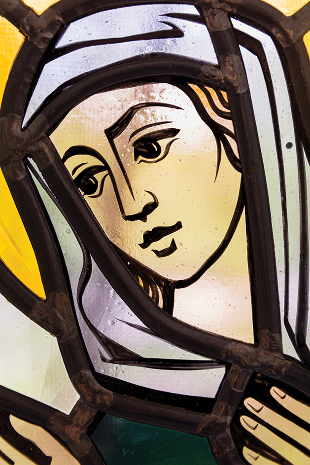 The former pastor of OLG, Father Bob Schwartz, agrees. “I purchased all that [chapel] art,” he says. “I love it. It’s beautiful work.” Father Schwartz says he gave Spahn the general idea for what they wanted—artwork centered on the crucifixion, the nativity and the resurrection—but that from there, Spahn took over. “A lot of times a stained glass window is real opaque, and you can’t see through it,” he says. “But the glass Spahn used in our pieces is different; you can see through a lot of it. So what it tells me is that my faith is something through which I see the world. It’s not something that blocks out the world.”